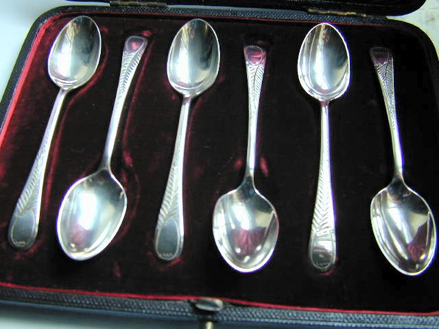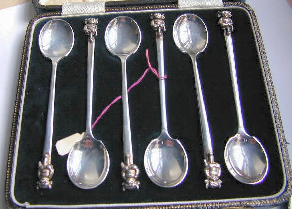 A silver spoon set.  Click here to see a close-up of one of the spoons, and click here to see a close-up of the hallmarks.