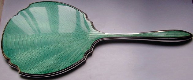 A silver mirror.  Click here to see the reverse, and here to see a close-up of the enamel.