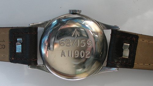 Classic vintage genuine Second World War Military Issue Omega stainless steel wristwatch, consisting of original untouched dial, black Arabic hour markers, blued steel hands, aluminium case with stainless steel back, hand-wound mechanical movement. The case back is inscribed 6B/159 A11902, showing that it was issued to the British Air Ministry, in around 1943. The watch in superb original condition. Although the dial has aged, it has never been touched and still looks good and is in lovely condition considering its 60 years old.